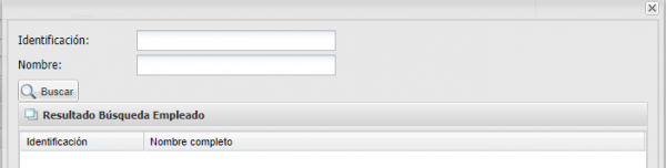 Lo primero es buscar el empleado, para ello clic en la “Lupa” y a continuación saldrá una ventana emergente. Aquí la búsqueda se puede realizar por “Identificación” o por “Nombre”.