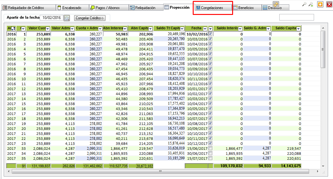 - congelarcreditos
