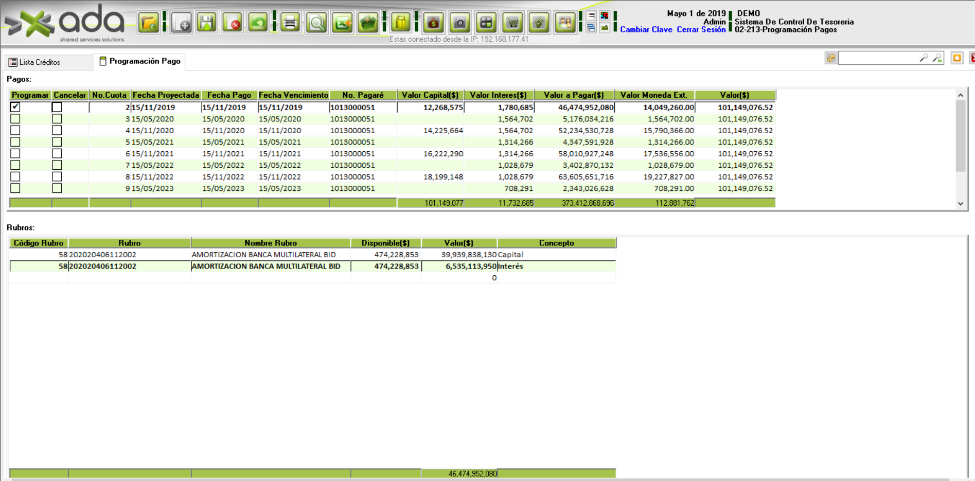 lista_programacion_pagos.png (1895×935 2020/06/17 11:55 305 KB) Ver el fichero original Administrador de Ficheros Borrar